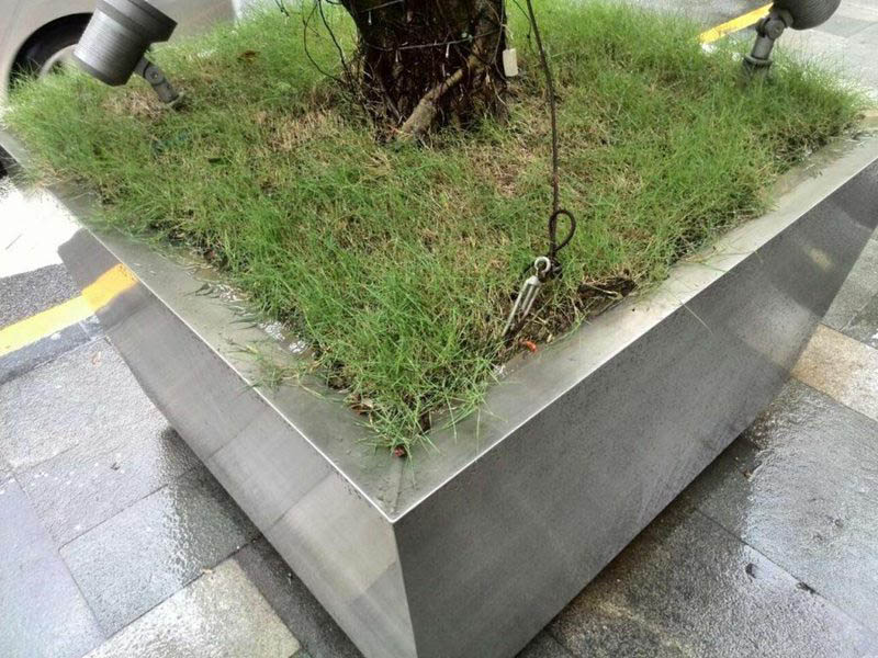 3、不銹鋼花壇透氣性好,不積水、不易損壞,比塑料花盆更利于樹木生長。